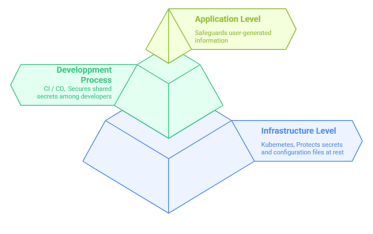 Infrastructure level: Protect your secrets at the lowest level in your deployments, especially by securing Kubernetes.