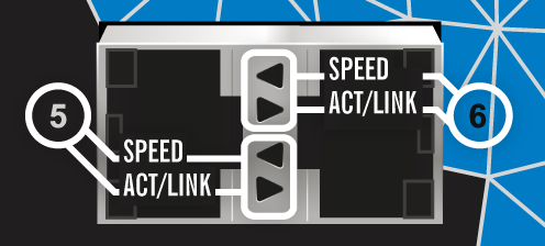 Both lower LEDs correspond to port 5 and both upper LEDs correspond to port 6. |