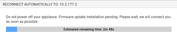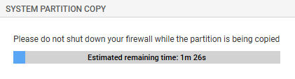 Pendant la mise à jour, le firewall redémarrera à plusieurs reprises. Ce comportement est normal.