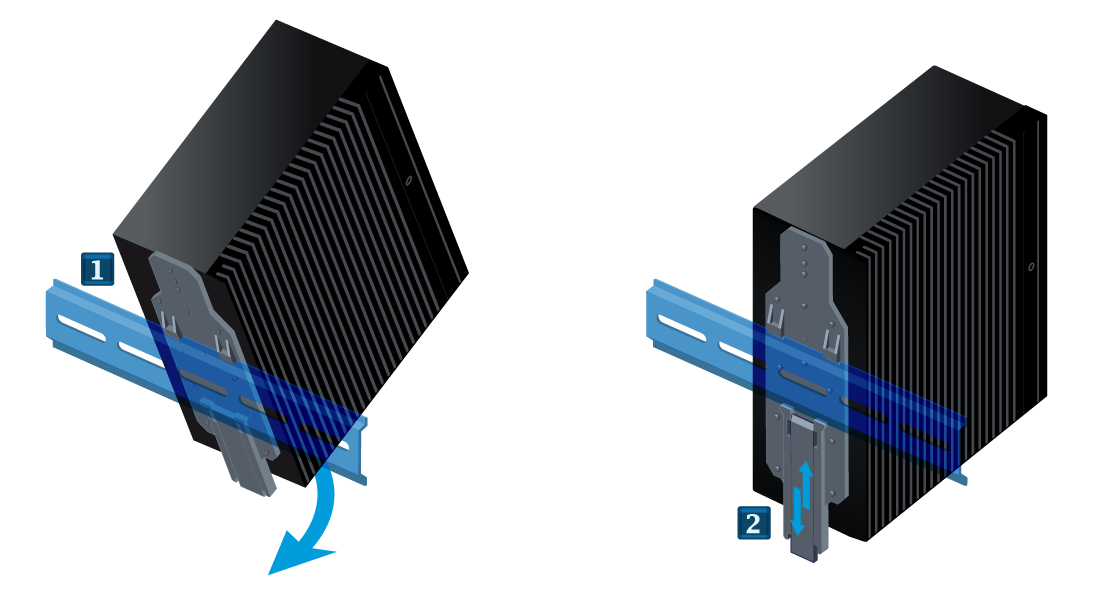 Pour l'installation en armoire, les modèles SN-XS-Series-170, SNi10, SNi20 et SNi40 disposent d’un kit de fixation sur rail DIN de 35 mm de large (standard EN 50022).