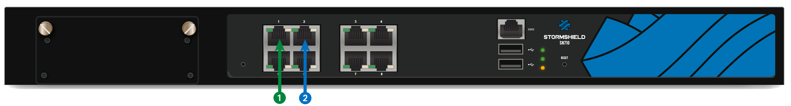 Les spécifications des modules d’extension et transceivers homologués Stormshield Network sont détaillées dans les sections Modules d’extension (SN710 et modèles supérieurs) et Connectiques Ethernet Fibre. |