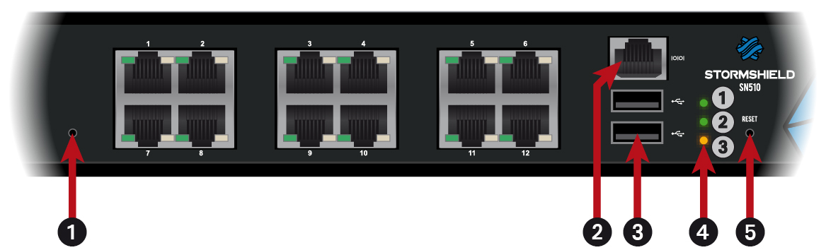 | 3 | Deux ports USB 2.0 qui peuvent être utilisés pour la configuration sécurisée ou les mises à jour. Vous pouvez également y brancher une clé USB ou un modem USB homologué. |