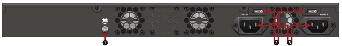 | 2 | Deux boutons d'alimentation permettent la mise en marche ou l’arrêt du firewall. |