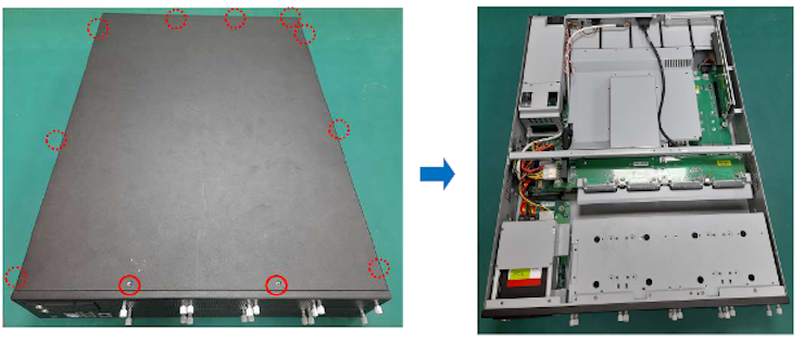 - Ôtez les 11 vis noires à tête fraisée du capot supérieur à l'aide du tournevis cruciforme.