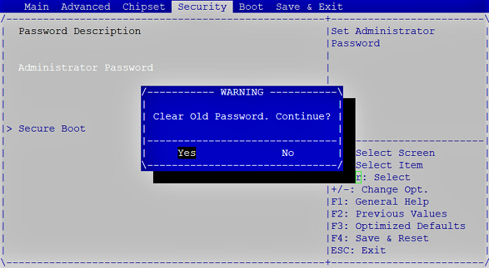 Dans la fenêtre WARNING, sélectionnez Yes et appuyez sur [Entrée].