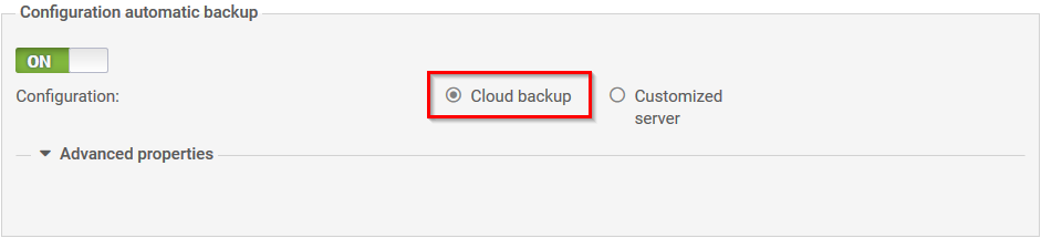 In the field Backup server selection, select the value Customized server. Next, fill in the various fields in the module Advanced configuration.