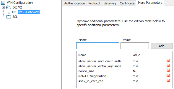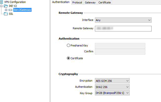 A gateway, named Ikev2Gateway by default, is created. - It can be renamed by right-clicking on this gateway and selecting Rename.