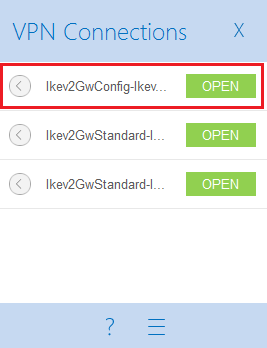 - Locate the connection created in the earlier steps (Ikev2GwConfig-Ikev2Tunnel in the example).