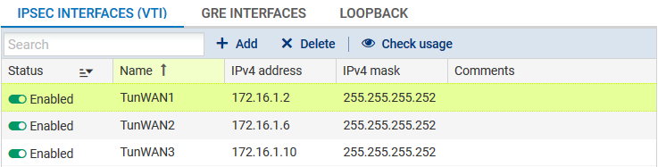 - TunWAN1 interface: 172.16.1.2 (mask 255.255.255.252),