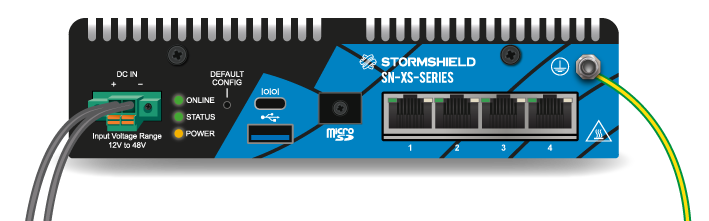 Connect the firewall to its power supply. Refer to the section Installation precautions in the Product presentation and installation guide for instructions.