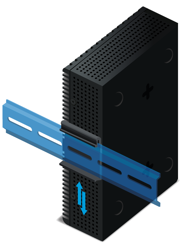 Install the firewall by using the mounting system provided in the kit. DIN rails must be screwed onto the firewall in advance.