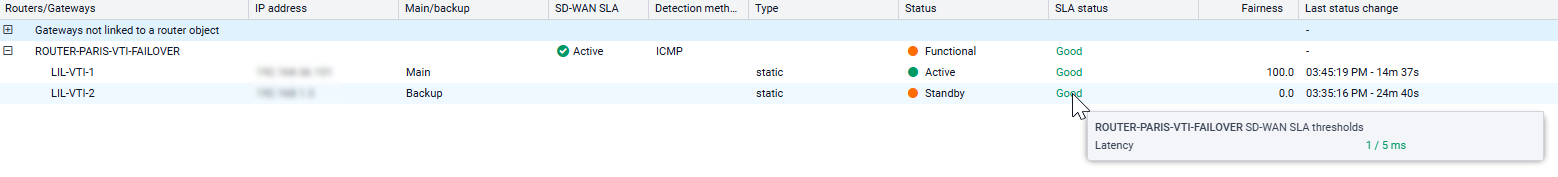 The monitoring module makes it possible to show the status of SD-WAN gateways as well as the values of the metrics relating to SLA thresholds.