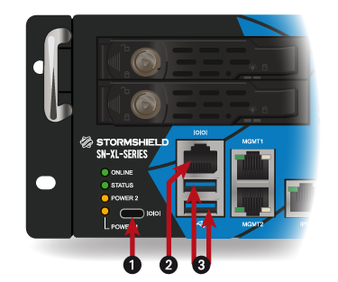 As the serial ports (1) and (2) allow access to the SNS firewall in console mode, users can connect to it from a PC.