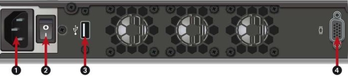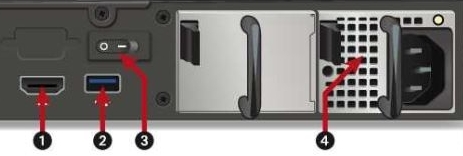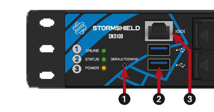 1: Button to reset the appliance to its factory settings (defaultconfig). 2: USB 3.0 port 3: Serial port for access in console mode |