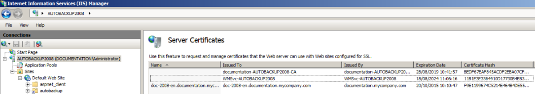 - Dans la console Gestionnaire des services Internet (IIS), sélectionnez votre site (autobackup dans l’exemple).