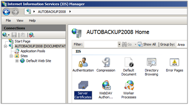 - Dans la console IIS, sélectionnez votre site (autobackup dans l’exemple).