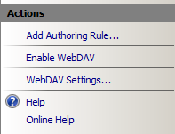 - Dans le panneau de droite (Actions), cliquez sur Activer WebDAV :