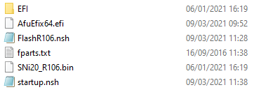- Copiez le fichier AfuEfix64.efi présent dans le sous-répertoire Aptio_V_AMI_Firmware_Update_Utility/afu/afuefi/64/AfuEfi64 vers la racine de votre clé USB.