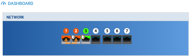 Dans l'interface Web d'administration, rendez-vous dans Monitoring > Tableau de bord. Le widget Réseau contient une représentation graphique des interfaces du firewall SNS :