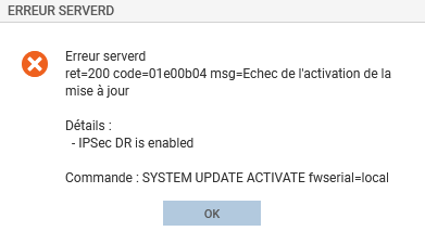 Pour mettre à jour un firewall déjà configuré en mode DR vers une version SNS plus récente respectant les recommandations IPsec DR de l'ANSSI, des manipulations supplémentaires peuvent être nécessaires selon la version d'origine.