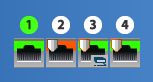 Dans cet exemple, seules les interfaces 1 (out), 2 (in) et 4 (dmz2) entrent en compte, l'interface dmz1 étant dédiée à la HA. Notez que l'interface 2 (in) présente un défaut de connectivité :