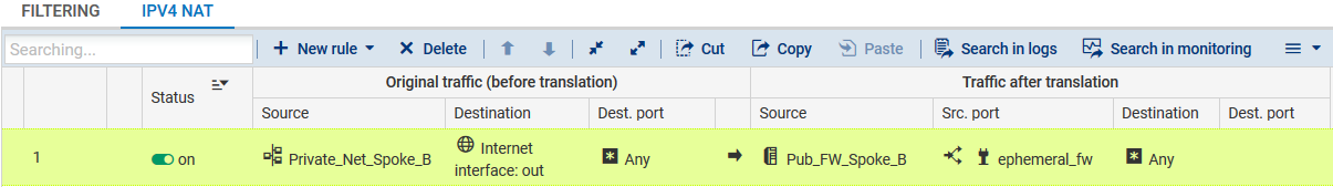 Pour permettre l’accès à Internet des machines du réseau Private_Net_Spoke_B, créez la règle de NAT suivante :