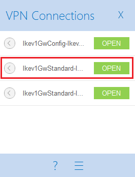 - Repérez la première connexion créée dans les étapes précédentes (Ikev1GwStandard-Ikev1Net1Tunnel dans l'exemple).