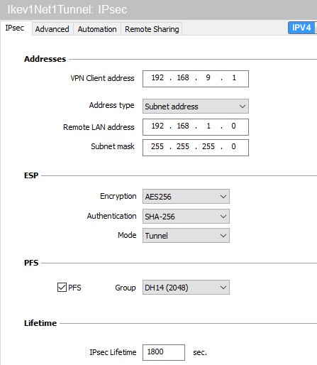 - Nom de phase 2 : Ikev1Net2Tunnel