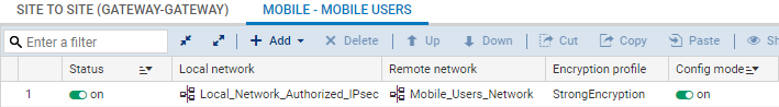 Dans le module Configuration > VPN > VPN IPsec > onglet Politique de chiffrement - Tunnels :