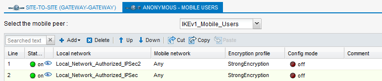 Dans le module Configuration > VPN > VPN IPsec > onglet Politique de chiffrement - Tunnels :