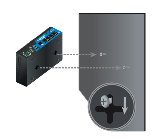 Les modèles SN160, SN160W, SN-XS-Series-170 et SNi10 peuvent également être fixés verticalement à l’aide de fixations et vis (non fournies). La tête de ces vis doit être d’un diamètre inférieur à 8 mm et le diamètre de la tige doit être inférieur à 4 mm. Procédez comme suit :