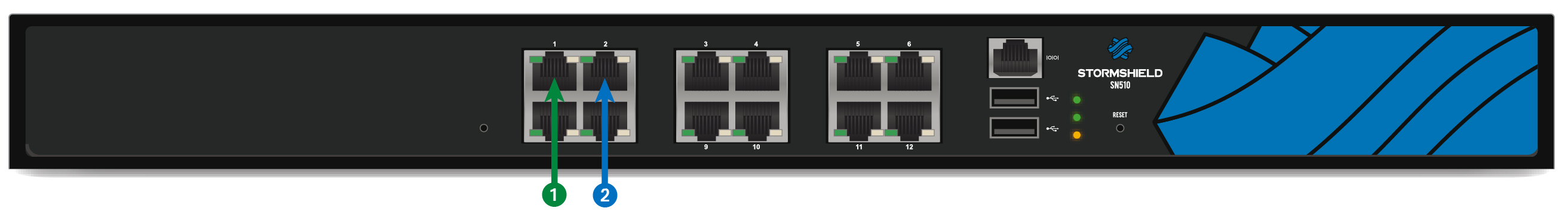 | 3 | Deux ports USB 2.0 qui peuvent être utilisés pour la configuration sécurisée ou les mises à jour. Vous pouvez également y brancher une clé USB ou un modem USB homologué. |
