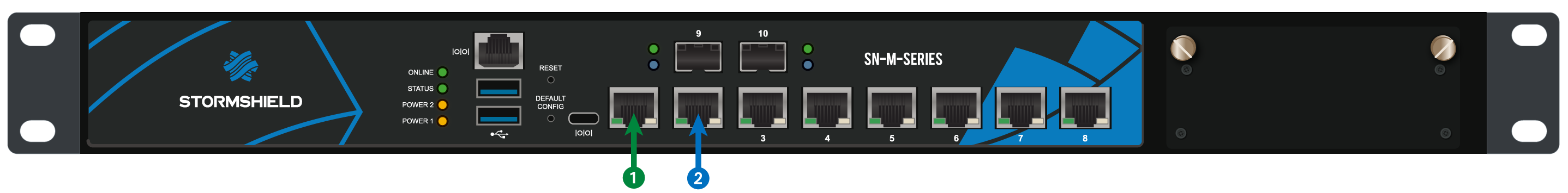 | 1 | Le port série permet d’accéder au produit en mode console ; il est possible de se connecter directement au firewall depuis un ordinateur. Le Baudrate par défaut sur ce modèle est 115200 bauds (8N1). |