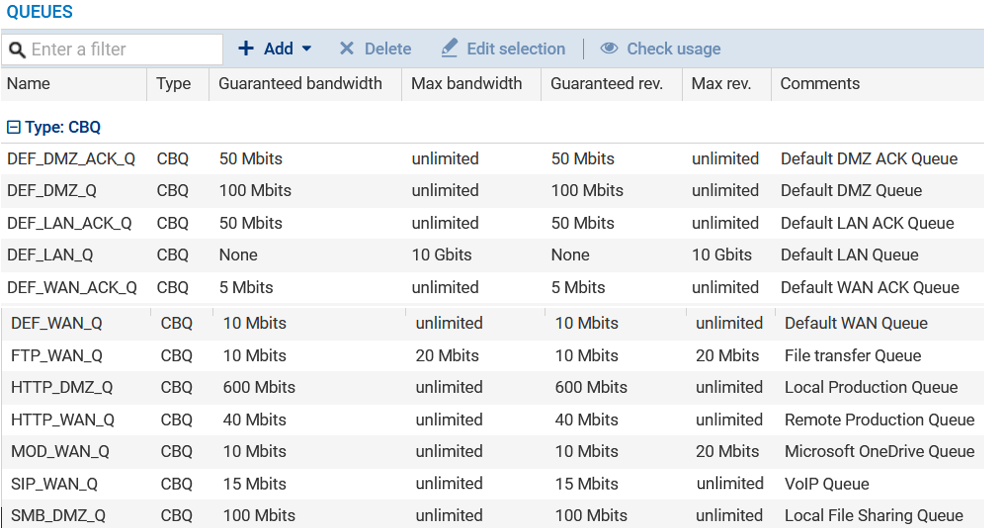 Placez-vous dans le module Politique de sécurité > Qualité de service > onglet Files d'attente.