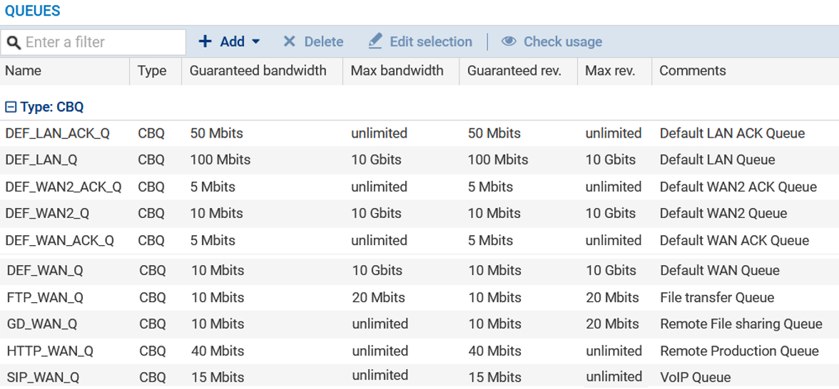 Placez-vous dans le module Politique de sécurité > Qualité de service > onglet Files d'attente :