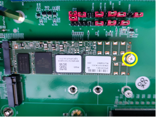 Chaque SSD peut être extrait simplement : pour déverrouiller son levier de fixation, appuyez sur le bouton gris, tout en le poussant latéralement vers la gauche.