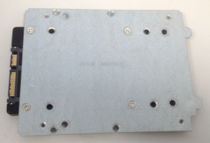 - Le SSD est monté sur une tôle support fixée par 4 vis à tête fraisée : ôtez ces 4 vis.